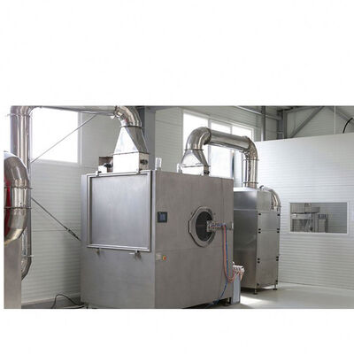 ภายใต้การหมุนของลูกกลิ้งเคลือบ เม็ดยาหรือเม็ดยาที่จะเคลือบจะเคลื่อนที่อย่างต่อเนื่องในลูกกลิ้งปั๊มรีดท่อส่งสื่อการเคลือบไปยังปืนฉีดเพื่อฉีดพ่นบนพื้นผิวของเม็ดยาหรือยาเม็ดที่จะเคลือบภายใต้แรงดันลบ หน่วยจัดการอากาศเข้าจะจ่ายลมร้อนที่สะอาดไปยังเตียงแท็บเล็ตตามขั้นตอนที่ตั้งไว้และพารามิเตอร์กระบวนการเพื่อทำให้ยาเม็ดหรือยาเม็ดแห้งอากาศร้อนถูกปล่อยออกจากหน่วยจ่ายอากาศออกที่ด้านล่างของชั้นของยาเม็ดหรือยาเม็ด เพื่อให้สารเคลือบที่ฉีดพ่นบนยาเม็ดหรือยาเม็ดจะก่อตัวเป็นฟิล์มแข็ง หนาแน่น แบนและเรียบอย่างรวดเร็วเพื่อเสร็จสิ้นการดำเนินการเคลือบ