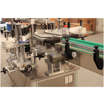 2.3 ภาชนะผ่านหน่วยแผ่นกด, ล้อกดนำการหมุนของภาชนะ, ฉลากถูกกดให้พอดีอย่างราบรื่น, การดำเนินการติดฉลากเสร็จสิ้น