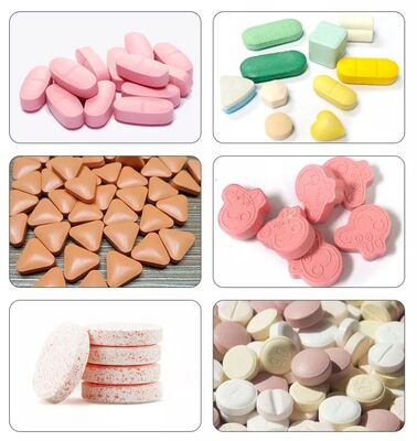 3. เครื่องสามารถกดได้ไม่เฉพาะเม็ดกลมแต่ยังรวมถึงเม็ดทรงเรขาคณิตที่แตกต่างกัน, เม็ดสองชั้นและเม็ดกลม, เม็ดอาจมีตัวอักษรประทับใจทั้งสองด้าน