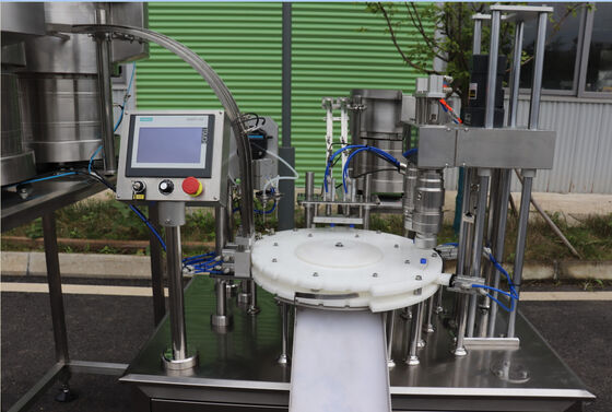 หัวเติมกำลังพุ่งเข้าไปในภาชนะเพื่อเติมและเคลื่อนขึ้นช้า ๆ เพื่อไม่ให้เกิดฟอง