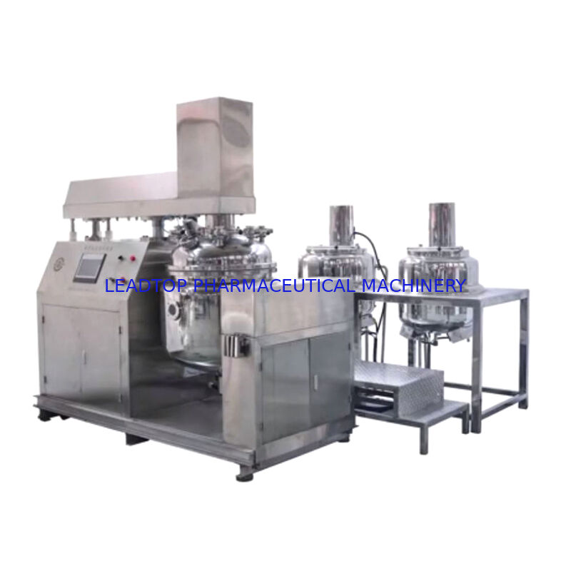 The machine including vacuum emulsifying mixer tank,water phase tank ,oil phase tank, vacuum pump, hydraulic system, tilting system, pipeline and electric control system.